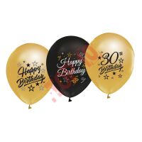 GP-ZC30 BALONY B&C Z NADRUKIEM "30" ZŁOTE I CZARNE 12" / 5 szt.