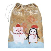 Worek świąteczny z juty "Miś i Pingwin"