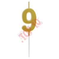 ŚWIECZKA PIKER CYFRA 9, METALICZNA ZŁOTA, 1 SZT.