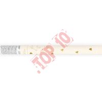 Tuba manualna z konfetti bibułowym w kształcie serc w kolorze białym i złotym, długość ok. 35 cm.