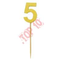 28-25 CYFERKA DREWNIANA NA TORT "5" ZŁOTA