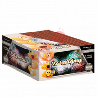 Czerwono - zielone palmy, srebrne palmy z trzaskami, brokatowe korony z niebieskimi gwiazdami, w finale srebrne chryzantemy
