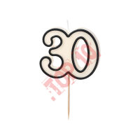 SCU16-30 ŚWIECZKA URODZINOWA "30" BIAŁO-CZARNA 5.5 cm