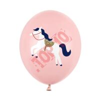 Balony Strong Konik z nadrukami, zestaw zawiera 6 balonów (6 pastelowych w kolorze Pale Pink z kolorowym nadrukiem), średnica ok. 30 cm.
