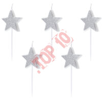 ŚWIECZKI URODZINOWE GWIAZDKI, SREBRNE, 3,5 cm 5 szt. SCS-7-018B