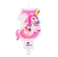 PF-SCJ3 ŚWIECZKA CYFERKA "3" Z JEDNOROŻCEM