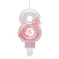 Świeczka Cyferka 8 na podstawce, ombre, biało-różowa, perłowa
