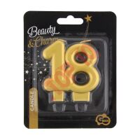 PF-SCZ18 ŚWIECZKA B&C CYFERKA "18", METALIK ZŁOTA, 8 CM