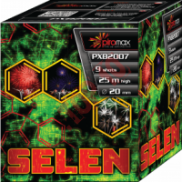 Opis: Wyrzutnia 9-strzałowa z efektami: czerwone komety przechodzące w purpurowe peonie, zielone komety przechodzące w zielone peonie oraz srebrne komety zakończone trzeszczeniem.