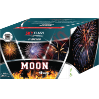 PXB2320 - 49 strzałowa wyrzutnia MOON; efekty: Czerwone i zielone drzewa z białym migotaniem, brokatowa korona z zielonym migotaniem, czerwona palma z białym migotaniem, kolorowe drzewa z trzeszczeniem, zielona palma z trzeszczeniem, fioletowe i zielone drzewa z czerwonym migotaniem, czerwone i zielone drzewa ze srebrną chryzantemą