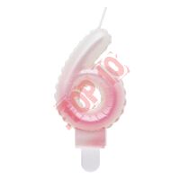Świeczka Cyferka 6 na podstawce, ombre, biało-różowa, perłowa