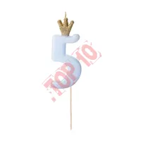 SCU6-5-001J Świeczka urodzinowa Cyferka 5, jasny niebieski, 9.5cm