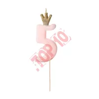 SCU6-5-081J Świeczka urodzinowa Cyferka 5, jasny różowy, 9.5cm