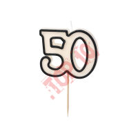 SCU16-50 ŚWIECZKA URODZINOWA "50" BIAŁO-CZARNA 5.5 cm