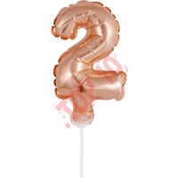 BC-5RZ2 BALON FOLIOWY RÓŻOWO-ZŁOTY "CYFRA 2" 13 CM NA PATYCZKU