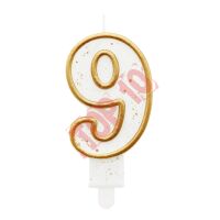 ŚWIECZKA CYFERKA "9" ZŁOTY KONTUR