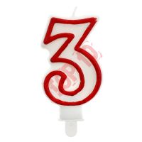 PF-SCC/3 ŚWIECZKA CYFERKA "3" CZERWONY KONTUR 7 CM