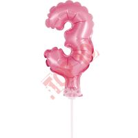 BC-5RO3 BALON FOLIOWY RÓŻOWY "CYFRA 3" 13 CM NA PATYCZKU