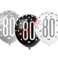 83390 BALON UQ GLITZ GROSZKI Z NADRUKIEM "80" MIX KOLORÓW 12" / 6 szt.