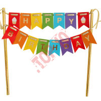 QT-DTHK DEKORACJA NA TORT HAPPY BIRTHDAY, KOLOROWE FLAGI