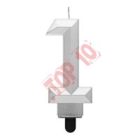 ŚWIECZKA NA TORT CYFRA 1, METALIZOWANA SREBRNA