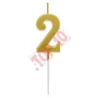 ŚWIECZKA PIKER CYFRA 2, METALICZNA ZŁOTA, 1 SZT.