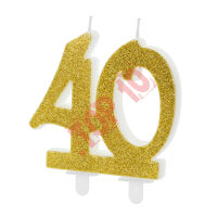 SCU5-40-019 ŚWIECZKA URODZINOWA "40" ZŁOTY BROKAT 7.5 cm