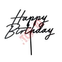 Topper akrylowy na tort Happy Birthday w kolorze czarnym, wysokość ok. 16.5 cm, szerokość około 18 cm.
