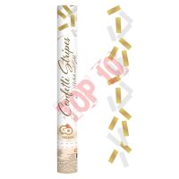 Elegancka tuba wypełniona złotym i białym konfetti to idealny dodatek na każdą wyjątkową okazję. Po lekkim przekręceniu wylatują dziesiątki błyszczących pasków, które unoszą się w powietrzu, tworząc efektowną i radosną atmosferę. Dzięki wyrzutowi na sprężone powietrze konfetti jest bezpieczne w użyciu i zapewnia niezapomniane wrażenia podczas ślubów, wesel, urodzin czy sylwestra.