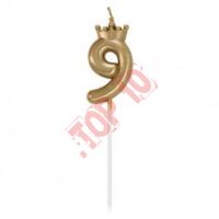 HC-SCK9 Świeczka cyferka 9, z koroną, szampańskie złoto, 6 cm