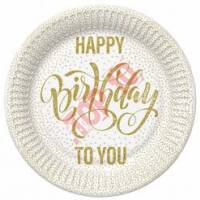 TM01_OG_055101 TALERZYKI PAPIEROWE HAPPY BIRTHDAY ZŁOTE KROPKI, 18cm, 8 szt.