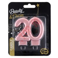 PF-SCRZ20 ŚWIECZKA B&C CYFERKA ''20'', METALIK RÓŻOWO-ZŁOTA, 8 CM