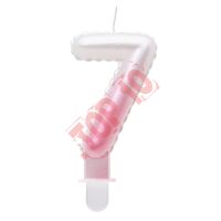 Świeczka Cyferka 7 na podstawce, ombre, biało-różowa, perłowa