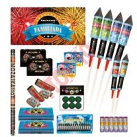 Opis / skład zestawu: Zestaw 7 elementów: rakiety, petardy, pchełki, rzymskie ognie, trzaskające kulki, bączki, serpentyny.