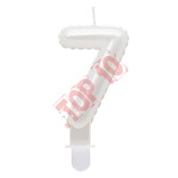 Świeczka Cyferka 7 na podstawce, biała, perłowa, Beauty&Charm