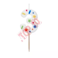 SCU11-3 Świeczka urodzinowa Cyfra ''3'', biała konfetti, 5.5cm